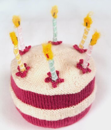 Seed beads and bugle beads are used to finish. Main cake is stuffed with upholstery foam cut to size, and a little extra stuffing is place on top to give a nice curved shape. Thin wire is used to make the candles stand up.