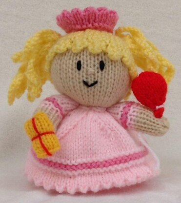This fun party girl holding a balloon and birthday present knitting pattern can be used as a chocolate orange cover or stuffed using the base pattern to make a lovely 15 cms soft toy.