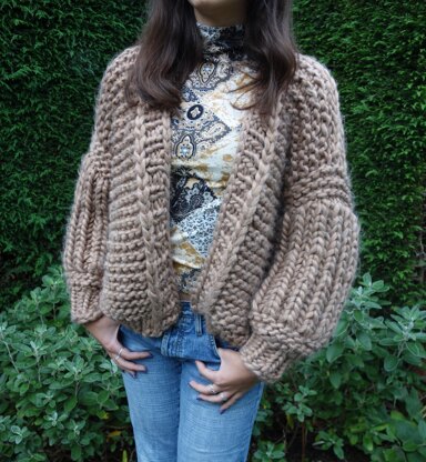 A unique take on a classic jacket! Worked in bulky weight yarn this quick to knit chunky textured jacket that is a unique layering piece to pair with dresses, skirts or pants! The cardigan is knitted bottom up in one piece for torso, which splits in the underarms area into Back and Front sections, then joined together. Unique designs for unique women! Skill level: Intermediate Basic brioche skills required, other special techniques used described in the pattern. The pattern is written for two methods: the intermediate and the more advanced that includes working in round, three needles bind off.
