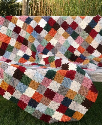 Designed for worsted weight yarn and tiny leftovers (each square uses only approx. 7.5 meters), this pattern is perfect for mindful stash-busting. With 9 sizes included — from baby to king — you can create anything from a sweet gift to a statement bedspread. And with the join-as-you-go method, there are no ends to weave in, so you can simply enjoy the process.