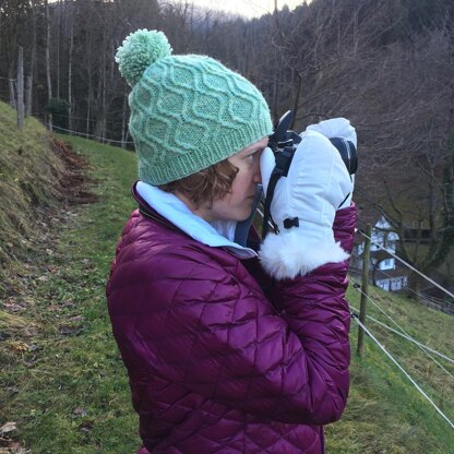 Before our trip to Germany last Winter I wanted a super cozy hat to wear hiking through the Black Forest. This hat fit the bill perfect! The warmth of the yarn and dense fabric created by the stitch pattern made for a very warm hat.