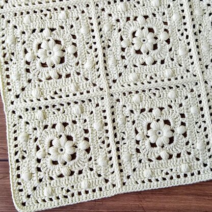 This crochet granny square baby blanket pattern easy with flower center.