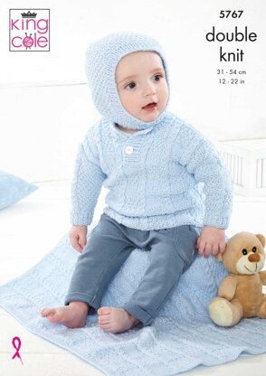 Blanket, Sweaters, Balaclava Helmet and Bootees Knitted in King Cole Baby Safe DK - 5767 - Downloadable PDF est un modèle de Tricot Intermédiaire par King Cole, disponible au format PDF téléchargeable et comprend des instructions en Anglais. Super amusant à réaliser, ce modèle pourrait être votre prochaine œuvre d'art !