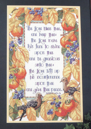 Designed by: Nancy Rossi\nGrace your home with this delightful blessing prayer accented with fruits and birds and framed with autumn leaves. Makes for heartwarming addition to your everyday dГ©cor or during the fall holidays.