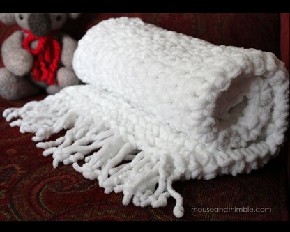 This bulky little receiving blanket is ultra soft and snugly. An irresistibly squishy security lovey for child to cuddle as they grow. Quick & Easy to crochet. You can finish with a tidy tailored edge or add the playful knotted fringe. If you can make a chain and work single crochet stitches (same as double crochet for UK/Australia)* it won't take long for you to create with just one skein.