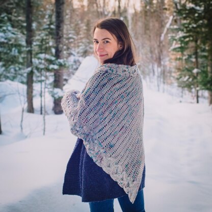 Dainty and practical, this reversible shawl features ridges of garter stitch and eyelets on the body, with reversible cables on two edges. The final edge is made in ribbing, for a neat finish. Whether you need a pretty accessory to feel cozy and stylish, or an effortless neckwear to get you through all kind of weathers, Blizzard Boulevard Shawl is sure to fit the bill.