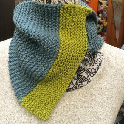 This simple cowl is knit flat and then seamed end to end, opposite corner to opposite corner. Easy to knit & easy to wear. You can make this cowl in almost no time. Make them in many colors to match anything in your wardrobe.