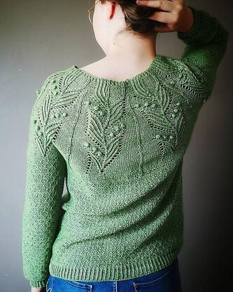 ConstructionThis sweater is worked from the top with the circular yoke method, starting with the neckband. Back, front and sleeves are worked together before separating them to work the body and finally finish the sleeves. This sweater is designed to fit with positive ease (+5 - +10 cm/ 2 - 4”)