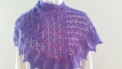 This fun lace shawlette works up quickly with its easy to remember lace stitch for most of the body and then a self-scalloping edging in garter. This shawlette starts with a garter tab that quickly grows into the five lace sections, all knitted flat.
