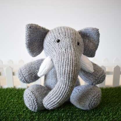 This cuddly elephant is knitted predominantly in stockinette, with garter stitch feet. Designed by Amanda Berry @fluffandfuzz, the elephant is knitted in acrylic DK yarns so he is easy to clean after play. Most pieces are knitted flat (back and forth) on a pair of single-pointed knitting needles, and the tail is an i-cord tube knitted on two DPNs. This pattern incorporates short row shaping. For confident beginners and above, other techniques used include casting on and off, knits, purls, increases and decreases, and seaming to finish.