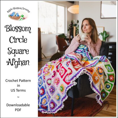 Crochet this happy and colorful Blossom - Circle - Square - Afghan using your yarn stash. The featured blanket was crocheted with Scheepjes Colour Crafter and StyleCraft Special DK, but most any yarn will work. Stamen (White) and Leaves (Pistachio) Join, Frame, and Border (Cream) The Petals, Circles, and Squares are a variety of colors.