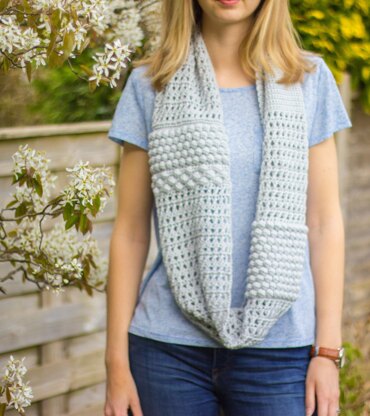 Crochet a beautiful blossom scarf for spring; the open twisted stitch gives a gorgeous texture without being too heavy, and contrasts with the chunky bobble stitch to create a modern scarf. Make it in bright contrasting shades or let the texture do the talking with just one colour.