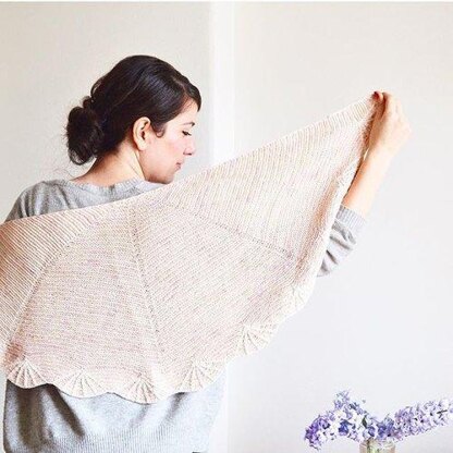 Blossom is knit bottom up, starting on the little scalloped edge at the bottom. Once the first set-up rows of the border are done, the pattern is very intuitive. And once the border is completed, there’s only shorter and shorter rows of garter stitch goodness.