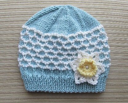 Blue and White Hat in Ridged Slip Stitch for a Girl 0-6 months, 2-4 years