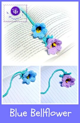 Crochet delicate blue bell flower bookmark – a symbol of humility and gratitude.