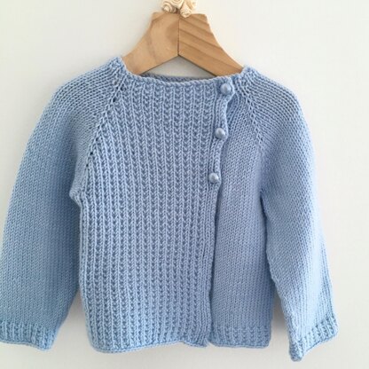 Blue Wren is a modern unisex baby cardigan pattern for newborns to 2-year-olds. It features an asymentric opening and a gentle textured pattern. Knitted seamlessly from the top down, this is a quick and easy-to-knit little one-piece jacket.