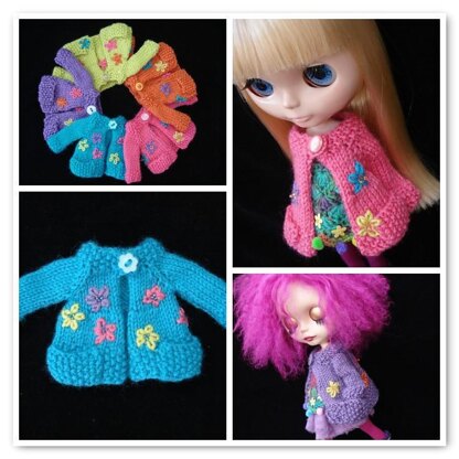 This is my own pattern that fits 12″ Blythe dolls. It fits loose so she can feel relaxed and it has little pockets to keep treats close by!