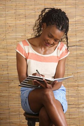This design was the result of my intent to create a casual summer piece that would work for a variety of occasions and wasn’t boring to knit! A casual summer tee with colorblock details provides a fun opportunity to play with color. Simple stockinette and garter are spiced up with a unique construction, and in a lightweight cotton yarn, this is a handknit you can still wear in the hottest weather.