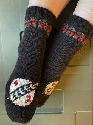 My husband encouraged me to create this colorwork sock pattern inspired by Boba Fett and the Mandalorian. Knit them for your favorite Star Wars superfan!