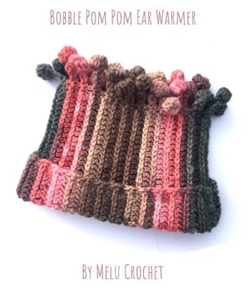 Quick, easy to follow crochet patterns, developed with my testers to create the fun Bobble Pom Pom Ear Warmer. The bobble pom pom edging is worked as you go along so they are great for using any colour changing yarn, as the pompoms will match the colour of your stripes. Unlike tassels or sewn on pom-poms, you don't need to worry about them coming off. UK terminology versions included in download. Step by step photo tutorials for both patterns and guides for the bobble pom pom and half treble stitches included in download *Instant Download Pattern*