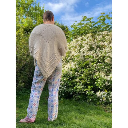 A light and cosy cover up that due to its modular construction, drapes beautifully over the shoulders. A versatile item of clothing, it's classic lines and textural interest make it as perfect for throwing over a posh frock during the walk from the car to the party, as snuggling up in PJs on the sofa in front of the TV. The shawl is made in modules, starting with a large centre back square, and with each new piece created by picking up and knitting from the previous module. The modules are primarily worked in garter stitch with some stocking stitch rows, bobbles and a simple yarn over lace pattern. The pattern is written for a worsted weight yarn but could be made using a DK yarn to create a shrug.