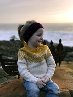 This yoke Sweater is knitted in the round, from bottom up with seamless sleeves. This is a Faroese style yoke with only two colours, as the original Fair Isle style patterns. It is inspired by the traditional Faroese fair isle patterns.
