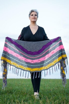Yarn Les Petits Points Parisiens Yak (60% SW merino, 20% silk, 20% yak) 400 m / 100 g MC: Carbone 540 m total CC1: Ultra Violet 70 m total, CC2: Remember 20 m total, CC3: Hippie Chic 156 m total, CC4: Aqua Speckles 72 m total, CC5: Rue du Soleil 216 m total