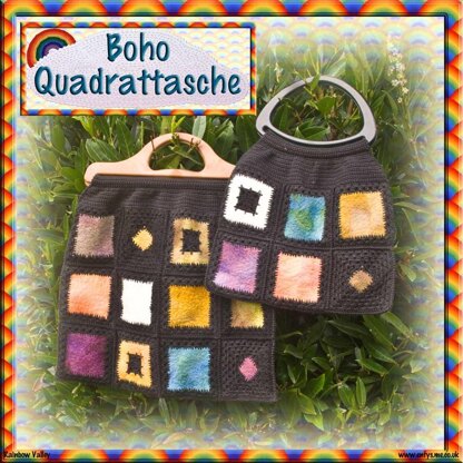 Bei der Herstellung der Tasche wird direkt in farbenfrohe Filzquadrate gehäkelt. Sie können die Filzquadrate in nur einer Farbe nehmen für einen gleichmäßigen Look, oder wie ich es gemacht habe, Regenbogenfarebn für einen Boholook.
