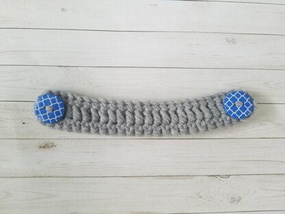 Any worsted weight scrap yarn. I used about .25 oz of yarn to make one ear saver and 2 buttons that were about .75” - 1” in diameter.