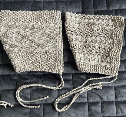 - The bonnets can be finished with either ribbon or a twisted cord (instructions provided)