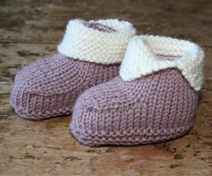 Accessories for babies make great gifts and are quick to knit using small amounts of left-over yarn. These use two shades of DK weight yarn, although you could, of course, knit the whole bootee in the same colour.