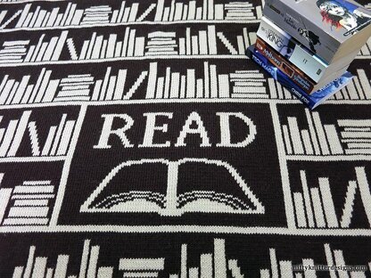Double knit, the blanket is fully reversible, featuring opposite color schemes on each side. Full instructions are included for the double knitting technique. For the “READ” text, an optional chart is included such that the text is readable on both sides (not backwards). The color work design is chart only, not written instructions.