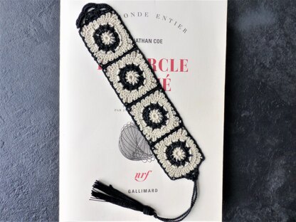 A very elegant bookmark made up of 4 grannies according to an original pattern of Oito Crochet. The bookmark is made even more precious by the addition of beautiful finishes. The very sober colours used here, grey and black, can be replaced by brighter colours, depending on everyone's taste. The model photographed was made with a thin pearl cotton (20) but you can also use a pearl cotton n° 10 with a slightly larger result. The model is not difficult to achieve, it is the regularity of the work that is most important. The PDF tutorial includes a main diagram and 11 detailed diagrams as well as a step-by-step explanation with 68 photos. A very original gift to offer!