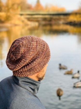 Boon Island is a unisex hat knit in the round from the brim up. Its simple Cracked Rib patterning is easily memorized making it a perfect social project. It can be worn slouchy or beanie-style with the brim folded depending on weather and mood. The tailored decreases give this otherwise casual hat a polished appearance.