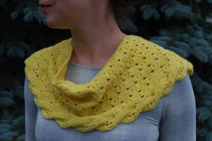 One skein of beautiful, lofty, hand-dyed alpaca/polypay blend yarn yields this perfect fall-weight scarf. An all-over rosette lace pattern pairs elegantly with a floating cabled edge that hugs the border like a climbing rose. Carry the summer with you into the frost.