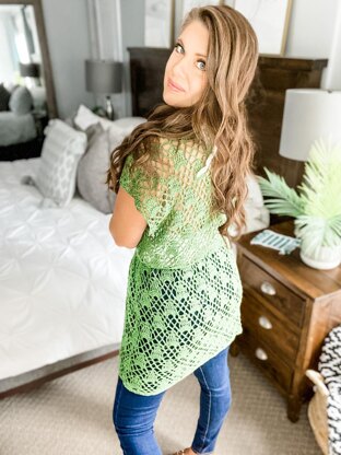 Whether you’re lounging by the pool or heading out on the town, The Bora Bora Sleeveless cardi is the perfect versatile piece for your wardrobe. Wear as a beach coverup or layer over a tank, sundress or romper. The beautiful lace stitch pattern replicates tiny pineapples that give this cardigan a tropical vibe. Video tutorial included for M-L on YouTube.
