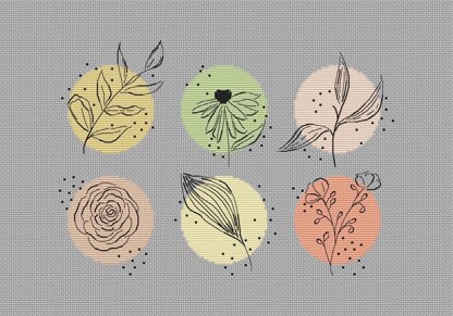 Botanical Sampler Counted Cross Stitch. The pattern features a set of 6 botanical elements in a minimalist line art style. Modern and unique wall decor. Fun and easy pattern with stunning results. \n\nSize: 148 x 104 stitches\nStitched on Aida 14 count: 29w x 21h cm (11 x 8 in)\nDMC Threads: 7 solid colours (no blends)\nUsed stitches: full cross stitch, half cross-stitch, backstitch\nSkill level: Easy / Beginner\n \n\nCross stitch pattern in PDF, Instant Digital Download includes: 1) cover page with preview; 2) instructions, symbols key and shopping list (DMC thread colour numbers and estimates, as well as fabric options); 3) two black and white charts, with and without backstitch; 4) two colour charts, with and without backstitch; 5) single page PDF for Pattern Keeper (available on request).\n\nPlease note: This pattern is for personal use only - not for commercial use. You can't make copies of our charts to distribute (either as PDF or printed versions) but you can definitely sell your finished cross stitch work.