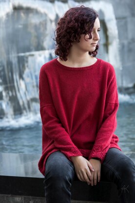 Bottom Line pullover is knitted bottom up and in round until underarms, then back and front are worked separately, and sewed in along the shoulder line. The sleeves are worked bottom up and in round, then sewed in too.The neckband is picked up and knitted in round.
