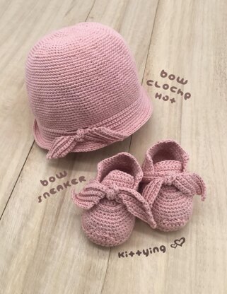 Bow Baby Hat and Sandals Set, Newborn Crochet Gift Set Pattern by Kittying