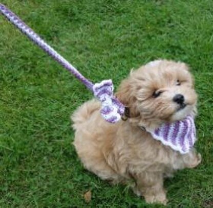 Let's spoil our furry friends and make something unique for them! Fun and stylish laced crochet bandana to fit a XXS to XXL size dog, made to be tied at the back in a knot. The leash length is easy adjustable, (details in the pattern) This fun accessory set is also reversible, can be worked either in a stripe design or solid colour with just contrast colour lace edge. The combinations are limitless!