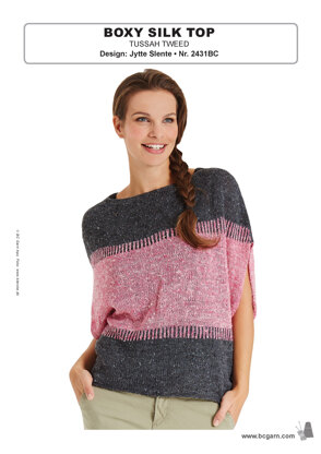 Boxy Silk Top in BC Garn Tussah Tweed - 2431BC - Downloadable PDF est un modèle de Tricot Intermédiaire gratuit par Jytte Slente, disponible au format PDF téléchargeable et comprend des instructions en Anglais. Super amusant à réaliser, ce modèle pourrait être votre prochaine œuvre d'art !