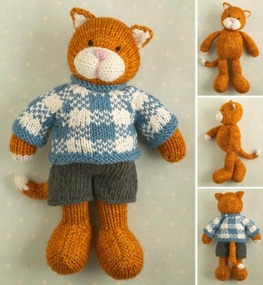 The pattern is for knitting flat on two needles and all pieces are seamed afterwards. Please note that this project is not a quick or simple knit. It takes me around 14 hours to make and finish each of the animals that I make and just under half of that time is spent on the finishing. There are lots of separate pieces which require seaming and sewing. That said this PDF file will give you all of the information and techniques that you need to knit the little cat pictured.