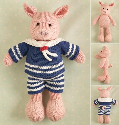 The file is 17 pages long and contains over 60 detailed step-by-step photographs along with full pattern instructions and tips for stuffing, seaming and finishing neatly. It includes the clothing pictured, the sweater and shorts can both be removed. Also included are extra designs for different breeds of pig including a fuzzy Tamworth, a pig with a grey patch and an option for floppy ears The pattern is for knitting flat on two needles and all pieces are seamed afterwards. Please note that this project is not a quick or simple knit. It takes me around 14 hours to make and finish each of the animals that I make and just under half of that time is spent on the finishing off. There are lots of separate pieces which require seaming and sewing and if you are looking for something fast and easy you would probably be better off finding a different pattern. That said this PDF file will give you all of the information and techniques that you need to knit the little pig pictured.