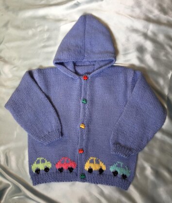 You can add as many cars as you wish while knitting away. The smallest size has one car each side, the larger sizes have 2 cars each front side. Color graph is easy to follow and only a few short rows and you are done.