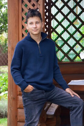 This sweater is worked from the top down. The construction starts at the collar. The back and the fronts are worked separately up to the armholes, and then everything is joined to complete the body in one piece. The sleeves are picked up around the armholes and also worked in the round.