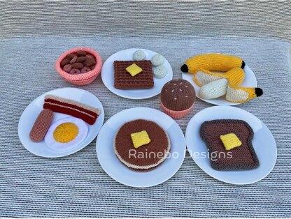 This Breakfast is mostly knit in the round, (Intermediate Level), using Magic Loop (or double pointed needles). All the foods are approx. realistic sizes and are created using #3-light wt. (DK wt.) yarn and size 3 (3.25mm) 32” Circular Knitting Needles (if using Magic Loop).