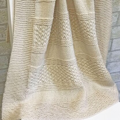 The Brighten Baby Blanket was designed to be a simple, natural and timeless blanket. It is easy to make because it is made up of basic knit and purl stitches, yet the different sections keep it interesting.