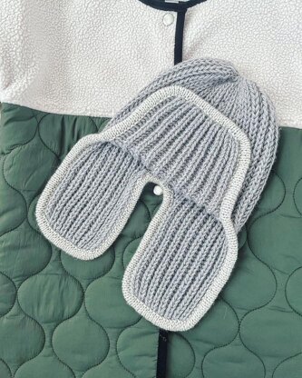 Brioche ear flap hat begins with knitting three separate pieces: front part and two ear flaps. After that the three pieces are joined together to continue knitting in the round. Then using a crochet hook, we make a knit edging for a perfect finished look of the hat.