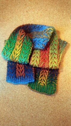 This scarf is knitted in 2-colour syncopated brioche.