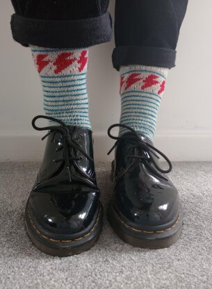 Whoever you are and whatever kind of shoes (or socks) you like to wear, I hope you enjoy knitting the Brixton socks - a design inspired by the iconic photo on Bowie’s Aladdin Sane album cover. The pattern is written for working toe up, but could easily be modified for top-down knitting. The pattern also includes full detailed instructions on how to work a German short row heel along the way but this can also easily be substituted by an alternative heel, if you would prefer.